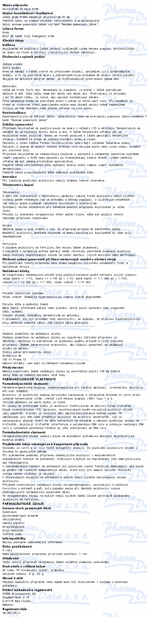 Přípravek Acyclostad se používá k léčbě oparů na rtech a obličeji ve stadiu svědění, pálení nebo puchýřků. Klinické studie ukázaly, že včasná léčba tímto přípravkem zastaví tvorbu oparu. Jestliže se opar již objevil, tento přípravek urychlí jeho hojení. Čtěte pozorně příbalový leták.