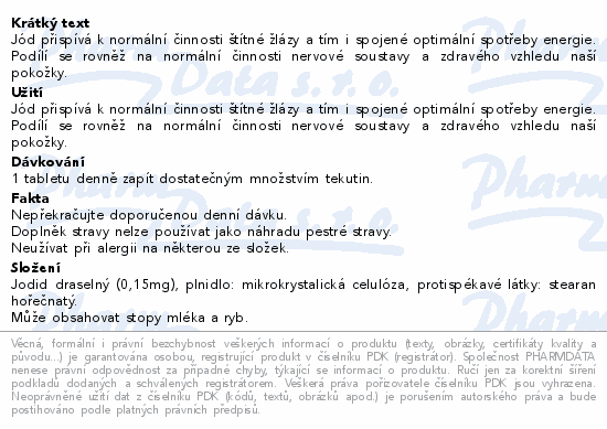 Jód přispívá k normální činnosti štítné žlázy a tím i spojené optimální spotřeby energie. Podílí se rovněž na normální činnosti nervové soustavy a zdravého vzhledu naší pokožky.