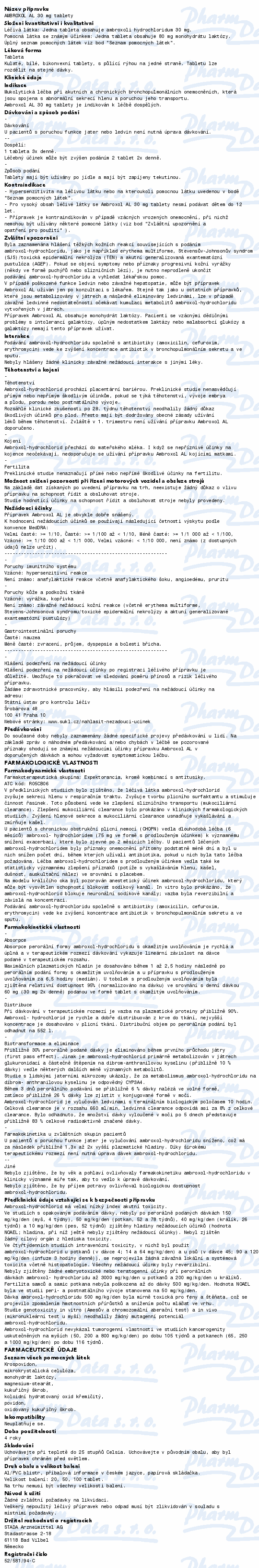 Přípravek Ambroxol AL 30 se užívá při akutních a chronických zánětlivých a infekčních onemocněních horních i dolních dýchacích cest. Čtěte pozorně příbalový leták.