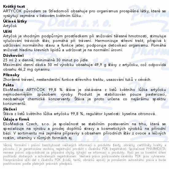 Artyčok šťáva + dárek Artyčokové kapsle—1000ml + 30 kapslí