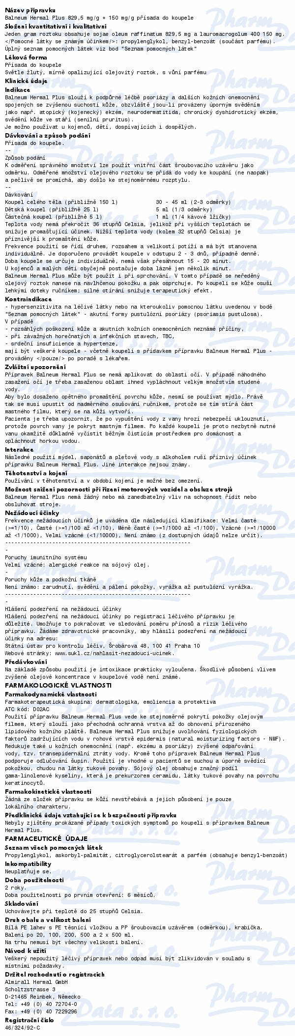 Balneum Hermal Plus je určen k podpůrné léčbě těm pacientům, kteří mají potíže s výrazně suchou a svědící kůží. Čtěte pozorně příbalový leták.