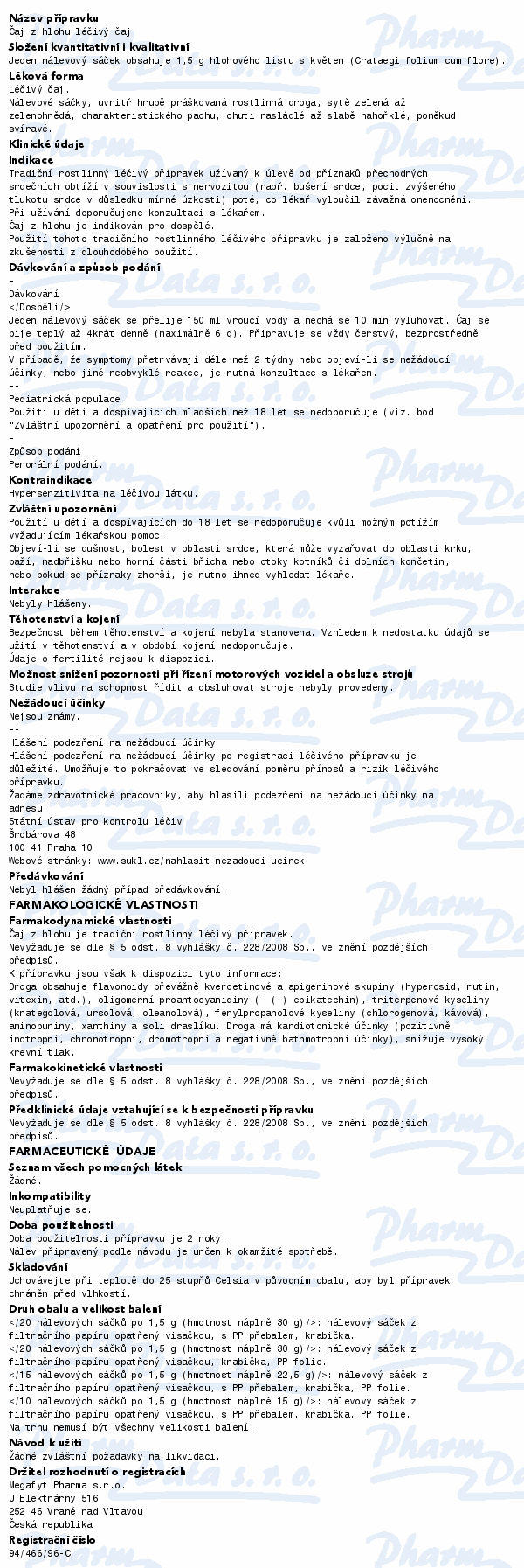 Crataegi folium cum flore 1,5 g v 1 nálevovém sáčku.
