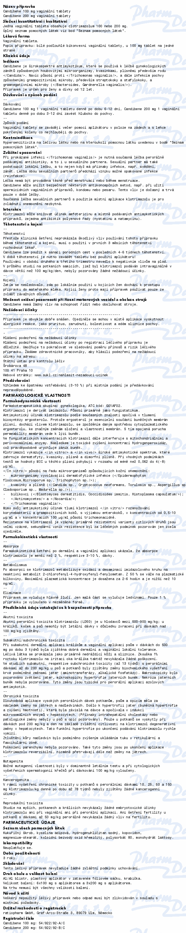 Candibene 100mg—6 vaginálních tablet