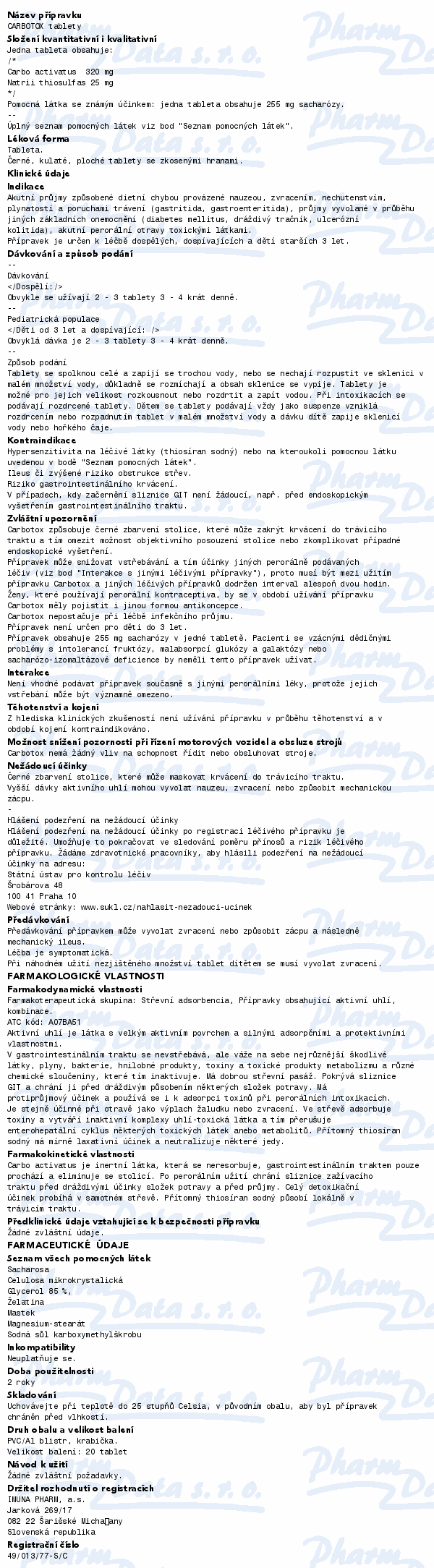 Carbotox je určen pro léčbu akutních průjmů způsobených dietní chybou, dráždivého tračníku, po poradě s lékařem u akutních otrav toxickými látkami. Čtěte pozorně příbalový leták.
