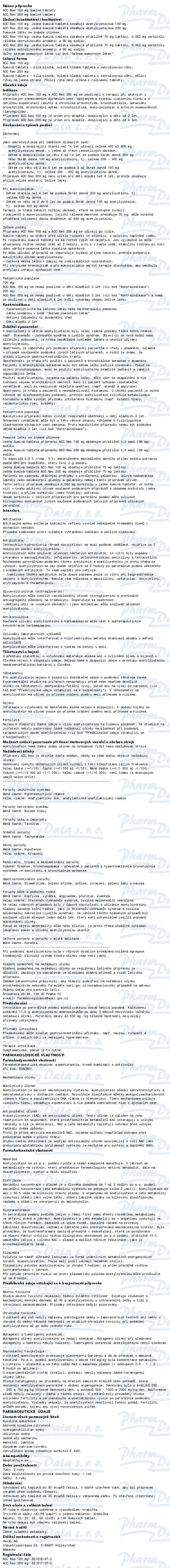 ACC 200 NEO se užívá k léčbě akutních a chronických onemocnění dýchacích cest, která provází intenzivní tvorba hustého vazkého hlenu a vlhký kašel.