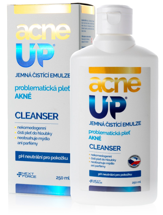 AcneUP® Cleanser je jemná čistící emulze je vhodná na každodenní péči o normální i problematickou pleť (např. akné, rosacea, seborrhoea). Šetrně odstraňuje nečistoty a make-up, zanechává pokožku přirozeně pružnou, vláčnou a jemnou.