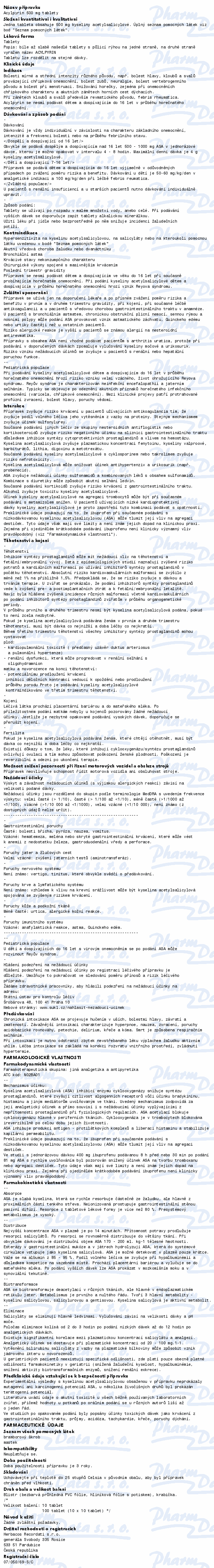 Acylpyrin 500 mg—10 tablet