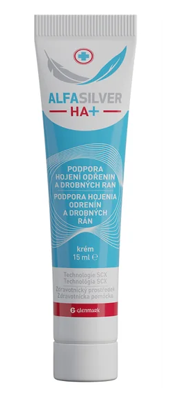 Drobná poranění si zaslouží účinné, ale zároveň šetrné ošetření. Krém AlfaSilver HA+ slouží k ošetření lehkých poranění, řezných ran, lehkých popálenin a odřenin. Jeho účinné složky vytváří na ráně ochrannou bariéru proti sekundární mikrobiální nákaze a podporují hojení ran. Přispívají k přirozené regeneraci tkáně. Kyselina hyaluronová podporuje hydrataci tkáně. Dimetikon má vysokou schopnost vytvářet ochranný film. Díky antimikrobiálním vlastnostem patentovaného komplexu SCX (oxid křemičitý obohacený o ionty stříbra a chlorhexidin) zajišťuje obranu proti vnějším mikrobiálním patogenům.