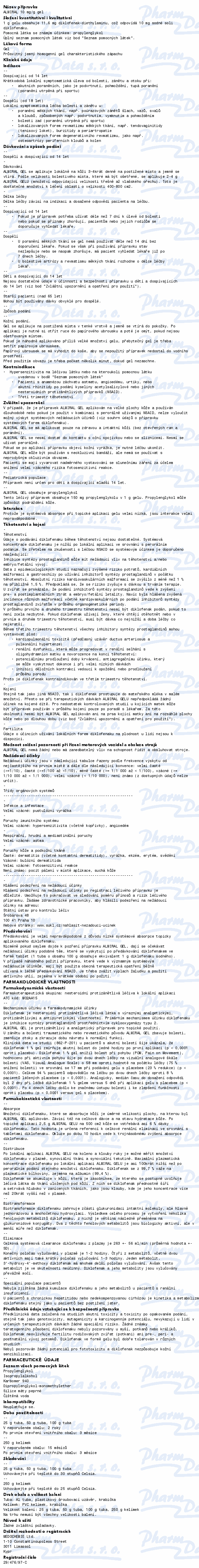 Almiral Gel nesmí být použit při přecitlivělosti na diklofenak a další složky přípravku, při přecitlivělosti na kyselinu acetylsalicylovou