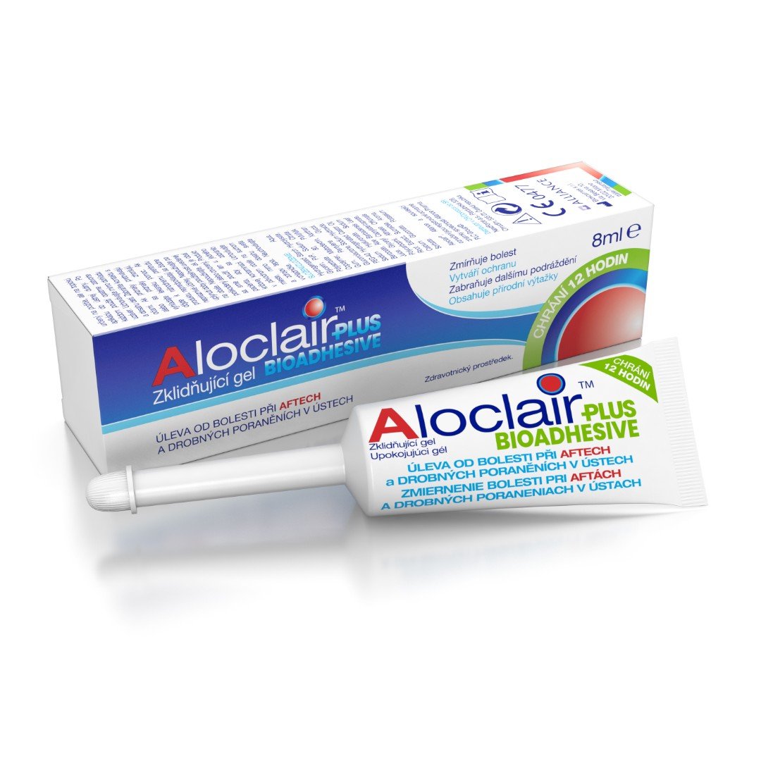 Aloclair Plus BIOADHESIVE zklidňující gel vytváří v místě aplikace ochranný film, který přilne ke sliznici dutiny ústní a vydrží déle než 12 hodin. Mechanicky tak chrání před vnějšími vlivy a minimalizuje riziko dalšího dráždění. Gelová konzistence ve spojení se speciálním aplikátorem je zvláště indikována pro zřetelně viditelné a identifikované léze. Gel ulevuje od bolesti a pomáhá při hojení aft, drobných poranění a podráždění ústní dutiny, otlacích v ústech způsobených rovnátky nebo zubními protézami. Mohou ho používat dospělí a děti od 4 let.