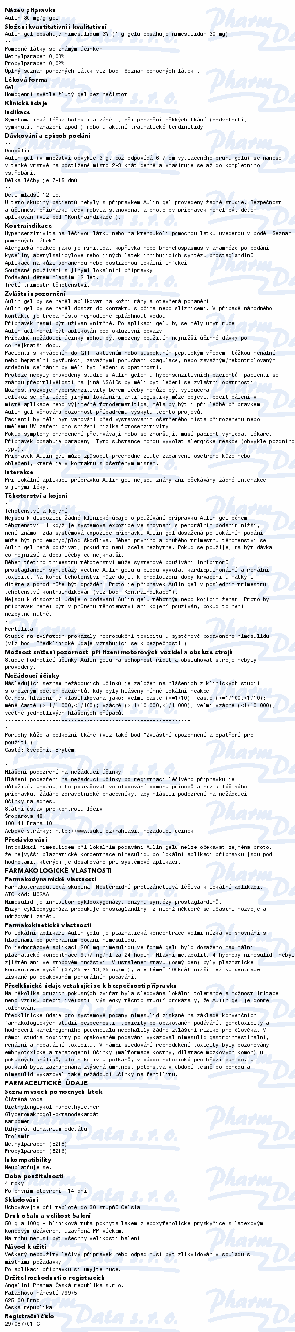 Aulin Gel obsahuje léčivou látku nimesulid, který patří do skupiny látek s protizánětlivými a bolest tišícími účinky (NSAID). Čtěte pozorně příbalový leták.