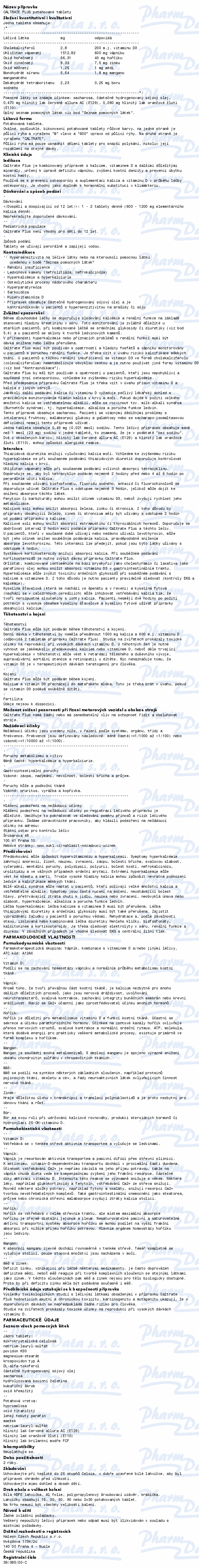 Caltrate Plus je kombinovaný přípravek s vápníkem, vitaminem D a dalšími důležitými minerály pro úpravu nedostatku vápníku, zvýšení hustoty kostí a prevenci úbytku kostní hmoty.
