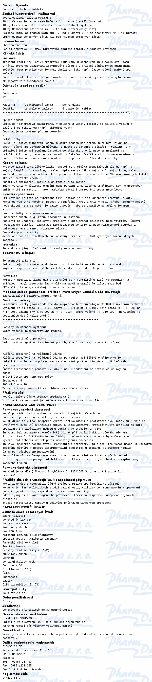 Canephron nesmí být užíván v případě zánětlivých onemocnění ledvin a v případě snížené funkce ledvin.