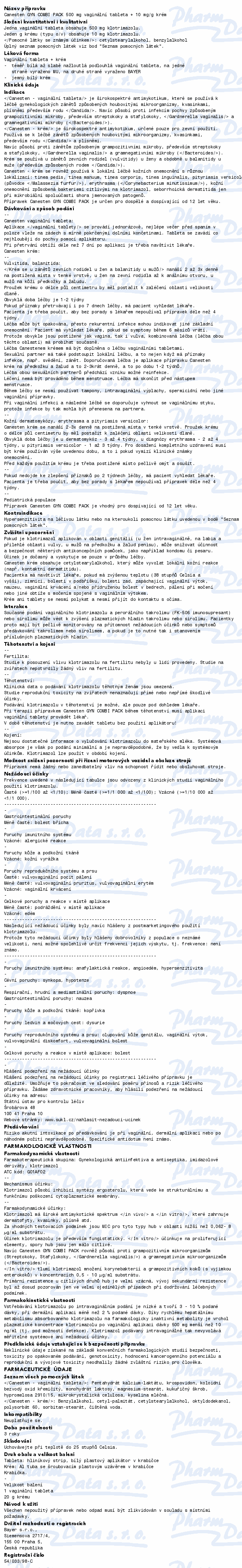 Canesten GYN Combi Pack je širokospektré antimykotikum ke kombinované léčbě zevních i vaginálních infekcí způsobených houbovitými mikroorganismy, kvasinkami, plísněmi (rod (Candida) a některými druhy grampozitivních mikrobů (streptokoky, stafylokoky) i gramnegativních mikrobů (bakteroides). Tableta k jednorázové vaginální aplikaci pro dospělé a děti od 12-ti let, aplikátor součástí balení. Krém na léčbu vuvitidy a balanitidy (k přeléčení sexuálního partnera).