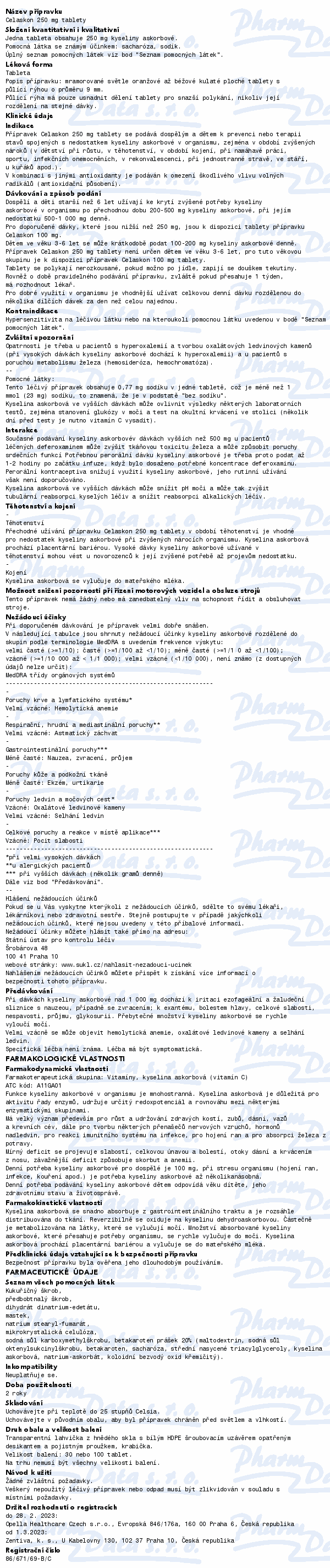 Celaskon 250 mg obsahuje vitamin C, který je důležitý pro růst a udržování zdravých kostí, zubů, dásní, vaziva a krevních cév, pro vstřebávání železa z potravy a pro normální imunitní odpověď na infekci a pro hojení ran. Celaskon 250 mg se užívá k prevenci nebo k léčbě stavů nedostatku vitaminu C v organismu, zejména v období zvýšených nároků (např. v dětství při růstu, v těhotenství a při kojení, při sportu, namáhavé práci, u infekčních onemocnění, v rekonvalescenci, ve stáří, u kuřáků a při jednostranné stravě, po rozsáhlých operacích).