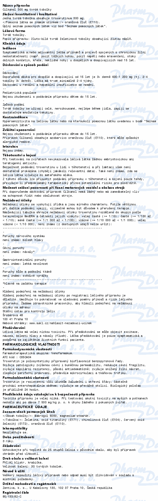 UPOZORNENÍ: Užívání přípravku Cilkanol při žilních onemocněních je jen součástí komplexní léčby. Je třeba dodržovat ostatní léčebné postupy, které doporučil lékař (kompresní léčba obinadlem nebo punčochou při křečových žilách, dodržování hygienických postupů při ošetřování bércových vředů a hemoroidů, aj.).