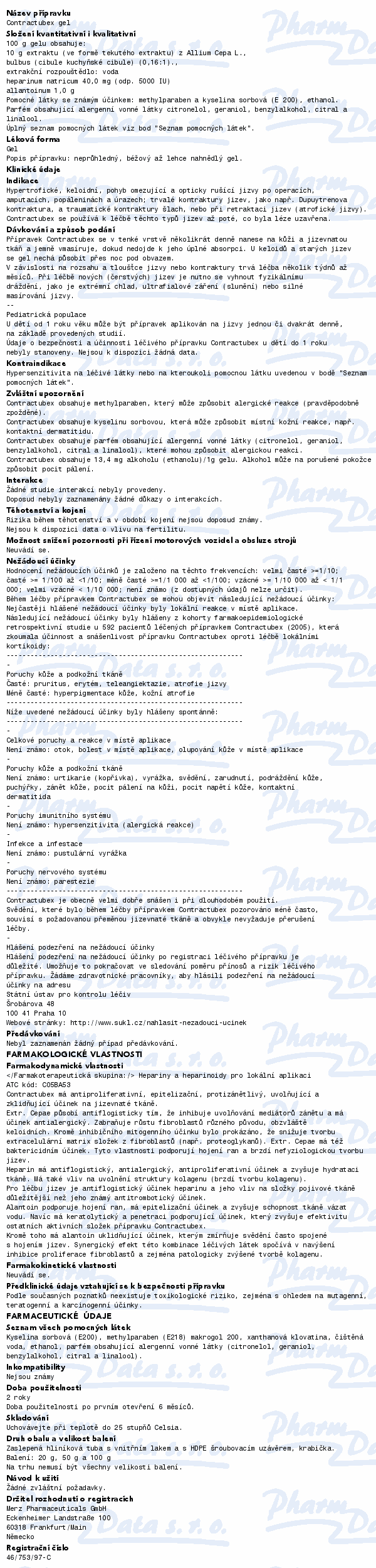 Contractubex je gel příznivě ovlivňuje hojení ran, zabraňuje vzniku jizev a má protizánětlivý účinek. Čtěte pozorně příbalový leták.