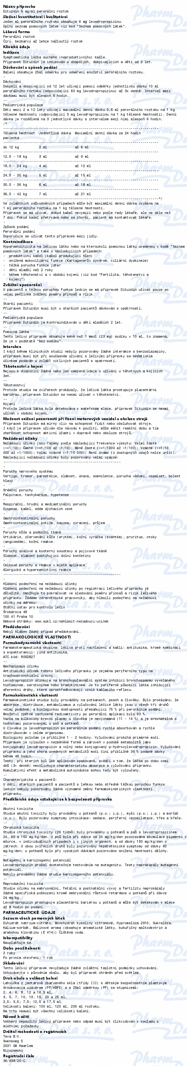 Léčivou látkou je levodropropizin 6 mg v 1 ml perorálního roztoku.