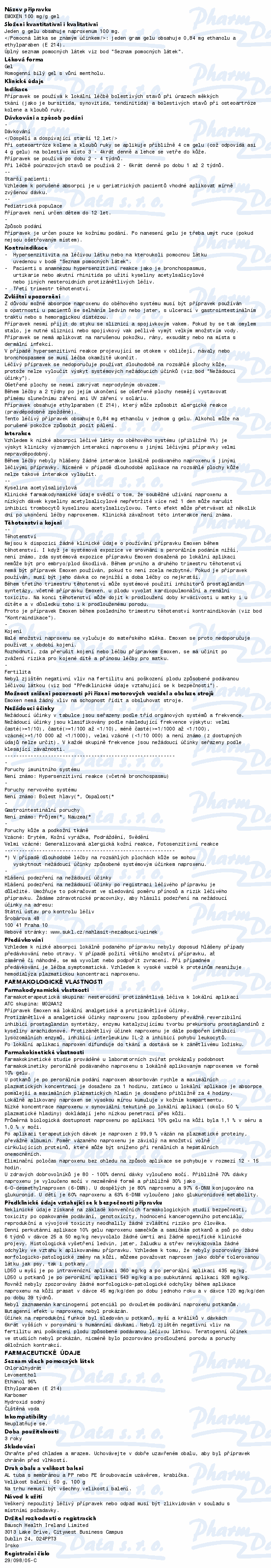 Přípravek Emoxen Gel se používá k léčbě poúrazových bolestivých stavů, jako jsou pohmoždění, podvrtnutí kloubu a poranění měkkých částí kloubů včetně poúrazového zánětu výstelky kloubního pouzdra, zánětu kloubního váčku a zánětu šlach. Čtěte pozorně příbalový leták.
