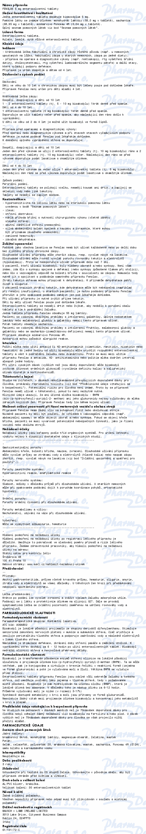 Fenolax je místně působící projímadlo. Působí v tlustém střevě, kde zvyšuje pohyb střeva a změkčuje stolici. Přípravek se užívá krátkodobě k léčbě zácpy k usnadnění vyprázdnění. Tablety Fenolax jsou určeny pro dospělé a děti od 4 let (děti pod dohledem lékaře).