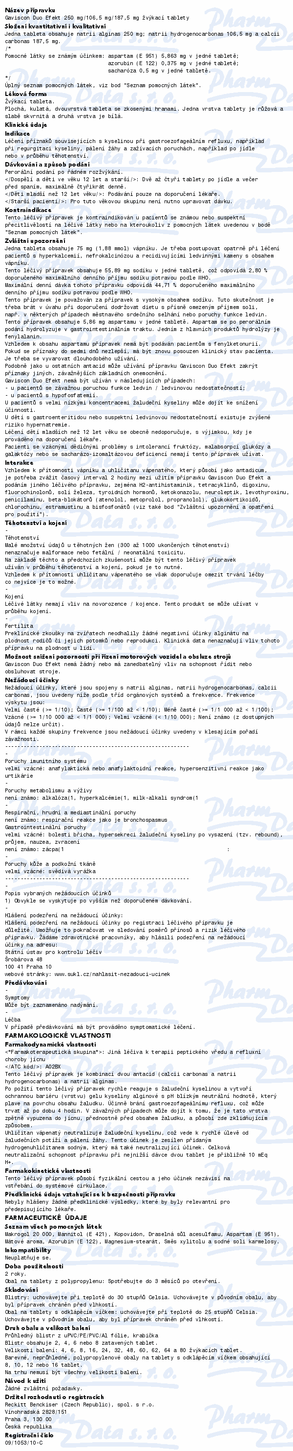 Gaviscon Duo Efekt Žvýkací tablety je kombinace dvou antacid (uhličitanu vápenatého a hydrogenuhličitanu sodného) a alginátu a působí dvojím způsobem: odstraňuje bolest a zažívací potíže; utišuje pálivou bolest na hrudníku způsobenou žadudečním obsahem. Čtěte pozorně příbalový leták.