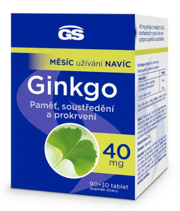 Extrakt z mladých listů ginkga obohacený o gotu kola. GS Ginkgo 40 + Gotu kola obsahuje standardizovaný rostlinný extrakt, který zaručuje přesně definovaný obsah nejdůležitějších aktivních látek – 24 % ginkgoflavono¬glykosidů a 6 % terpenolaktonů. Ginkgo biloba podporuje normální činnost mozku a jeho kognitivní funkce, jako je dlouhodobá i krátkodobá paměť, či soustředění. Podporuje mikrocirkulaci krevního systému, a tím pomáhá při pocitu studených rukou a nohou. Gotu kola neboli pupečník asijský podporuje kognitivní funkce a přispívá k dobrému duševnímu zdraví.