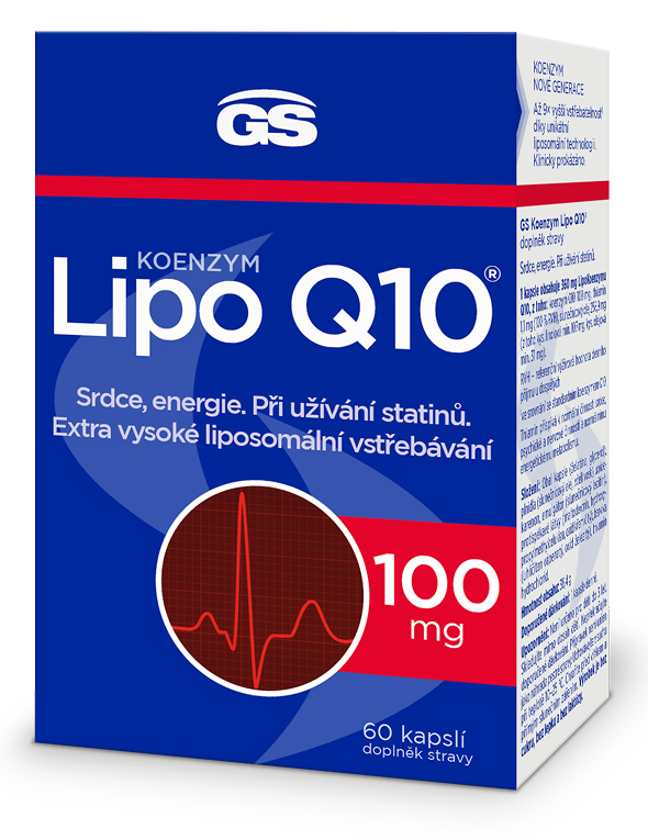 Dopřejte svému tělu koenzym Q10 nové generace! GS Koenzym Lipo Q10 má nové, extra silné složení s revoluční technologií liposomálního vstřebávání. To zajišťuje až 9× vyšší vstřebávání ve srovnání se standardním koenzymem Q10. Koenzym Q10 je nezbytnou součástí každé buňky lidského těla. V našem organismu se účastní procesů spojených s tvorbou energie. Nejvíce koenzymu Q10 se vyskytuje v orgánech s vysokými požadavky na energii, jako jsou srdce, plíce a játra. Nároky na koenzym Q10 se stupňují při fyzické námaze i stresu a s přibývajícím věkem jeho přirozená produkce v těle klesá. Jeho doplnění lze doporučit sportovcům či jinak aktivním osobám i seniorům. Doplněk stravy je navíc obohacen o vitamin B1, který přispívá k normální činnosti srdce, nervové soustavy, psychické činnosti a normálnímu energetickému metabolismu.