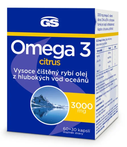 Vyvážená kombinace nejdůležitějších nenasycených mastných kyselin EPA a DHA pro podporu zdravého srdce i správné činnosti mozku. GS Omega 3 Citrus obsahuje 3 000 mg vysoce čištěného rybího oleje v denní dávce, bohatého na omega-3 kyseliny v přirozené formě triglyceridů, která je pro organismus až o 50 % lépe využitelná než často používané polosyntetické ethylestery. DHA a EPA v denní dávce 250 mg přispívají ke správné činnosti srdce. DHA navíc v dávce 250 mg podporuje správnou činnost mozku a zdravý zrak. Přípravek je obohacen o vitamin D3 pro podporu imunity, zdravých kostí a zubů. To vše v kapsli s citrusovým aroma.
