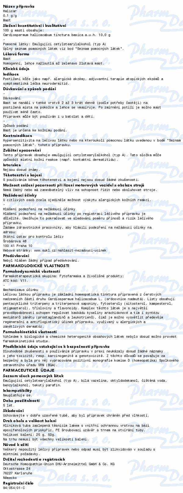 Halicar se používá na ekzémy alergického původu, k doléčování a podpůrné léčbě atopických ekzémů a neurodermitid (svědivá kožní onemocnění). Čtěte pozorně příbalový leták.