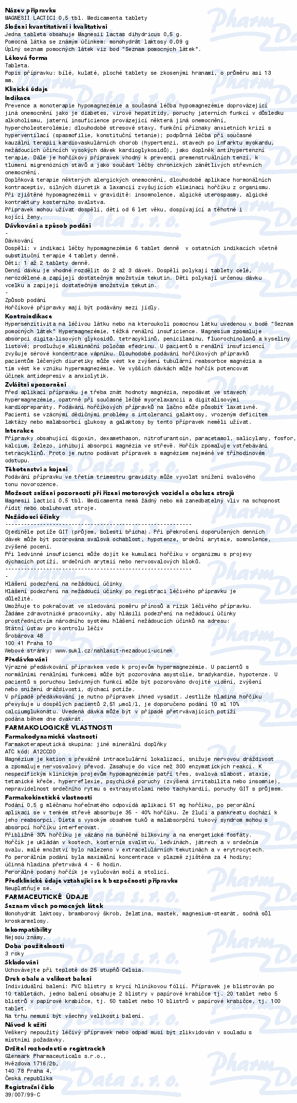 Prevence a monoterapie hypomagnezémie a současná léčba hypomagnezémie doprovázející jiná onemocnění jako je diabetes, virové hepatitidy, poruchy jaterních funkcí v důsledku alkoholismu, jaterní insuficience provázející některá jiná onemocnění apod. Čtěte pozorně příbalový leták.