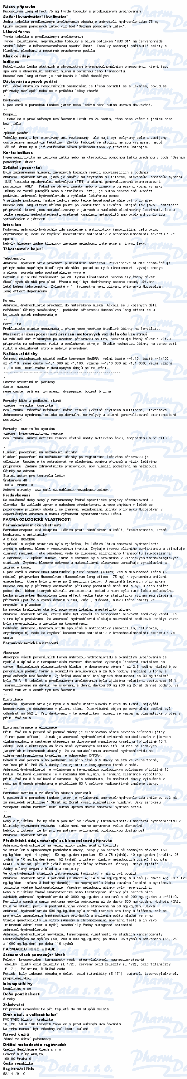MUCOSOLVAN long effect je určen k mukolytické léčbě akutních a chronických bronchopulmonálních onemocnění, která jsou spojena s abnormální sekrecí hlenu a poruchou jeho transportu. Čtěte pozorně příbalový leták.