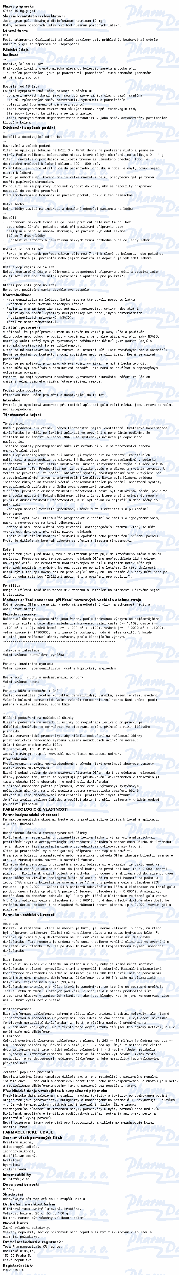 Olfen gel je určen pouze k lokální aplikaci na neporušenou pokožku.