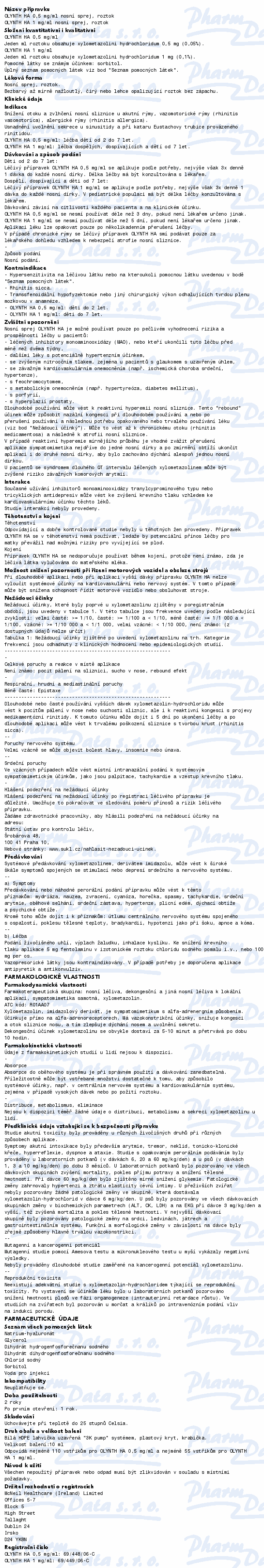 Olynth HA s obsahem kyseliny hyaluronové zvlhčuje nosní sliznici a snižuje pocit suché nosní sliznice pro větší pohodlí pacienta. Navíc neobsahuje žádné konzervační látky, které mohou nosní sliznici dráždit Díky speciální technologii dávkovací pumpičky zůstává obsah přípravku mikrobiologicky stálý až 1rok po prvním otevření.