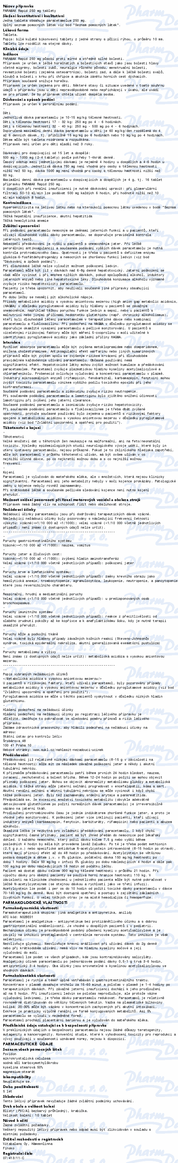 Paramax Rapid 250 mg poradit s lékařem, který Vám upraví dávkování.