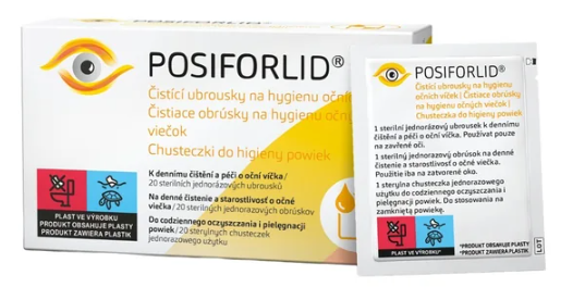 POSIFORLID čistící ubrousky na hygienu očních víček jsou zvlhčené, sterilní, jednorázové ubrousky vhodné k dennímu čištění a péči o citlivá oční víčka.