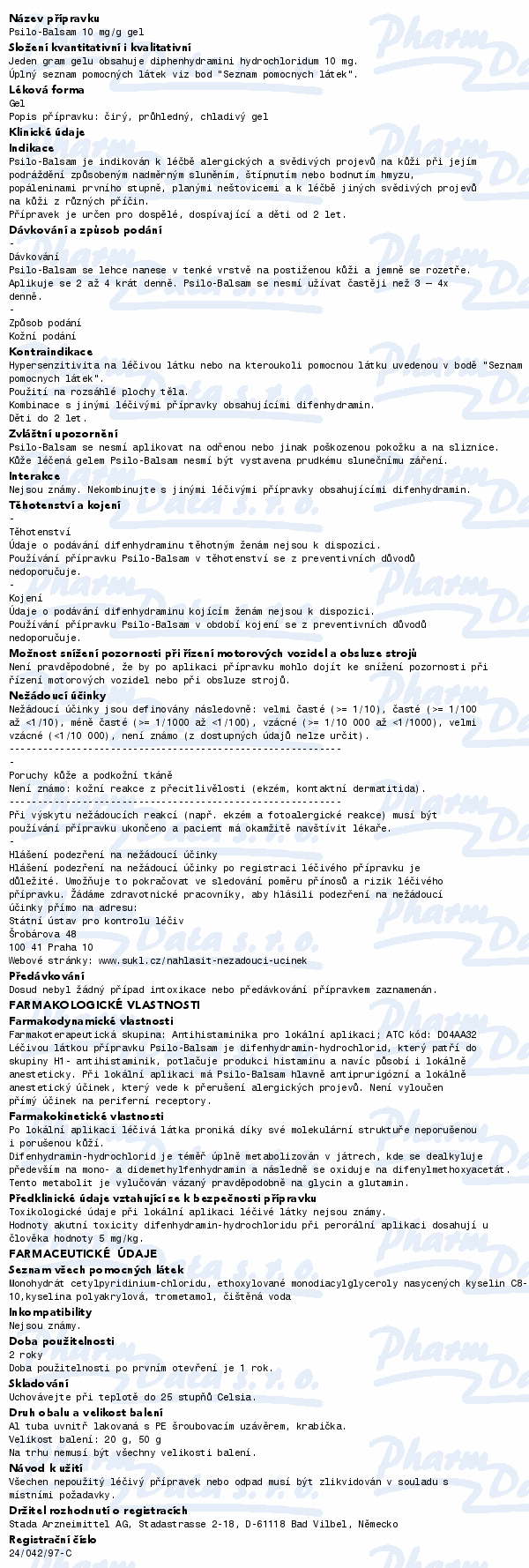 Psilo-balsam je přípravek je určen k místní léčbě alergických a svědivých projevů kůže při jejím podráždění. Čtěte pozorně příbalový leták.