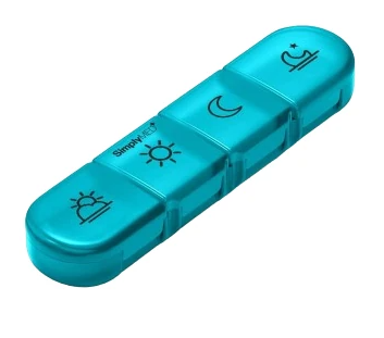 Denní dávkovač léků SimplyMed Daily ze čtyřma přihrádkami vám zaručí přehledné dávkování ráno, v poledne, večer i v noci–po celý den.