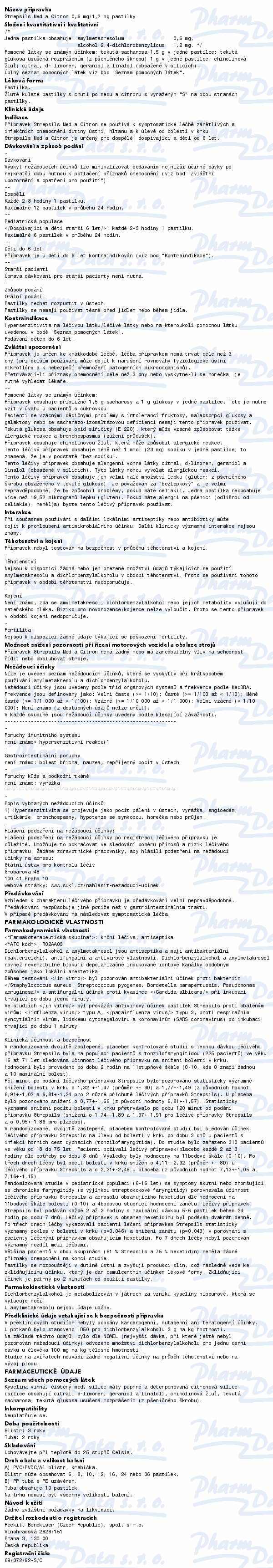 Pastilky Strepsils Med a Citron obsahují léčivé látky amylmetakresol a dichlorbenzylalkohol, které mají antiseptické účinky tzn., že ničí bakterie, viry a kvasinky způsobující bolest v krku a záněty v dutině ústní a hltanu. Čtěte pozorně příbalový leták.