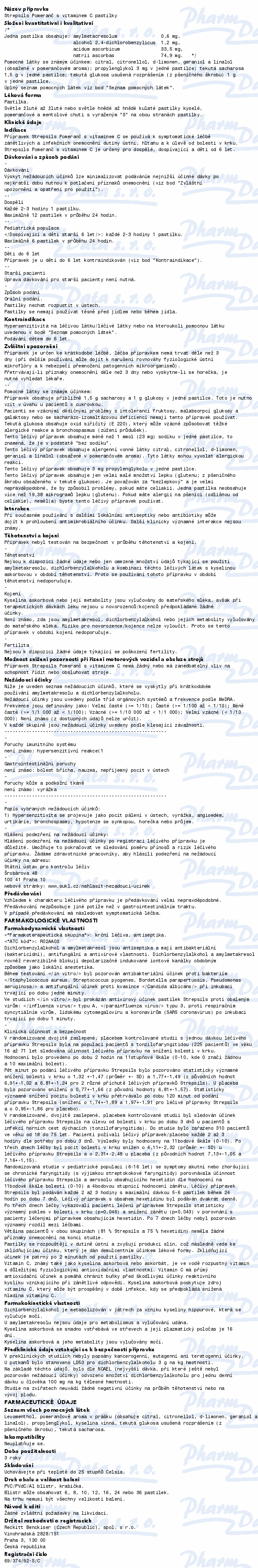 Strepsils Pomeranč s vitaminem C jsou pastilky s antiseptickými účinky. Působí proti bolesti a zánětu v dutině ústní a hltanu způsobené bakteriemi, viry nebo kvasinkami. Pastilky léčí příznaky zánětlivých a infekčních onemocnění dutiny ústní a hltanu a pomáhají ulevit od bolesti v krku. Pastilky Strepsils Pomeranč s vitaminem C mohou užívat dospělí, dospívající a děti od 6 let.