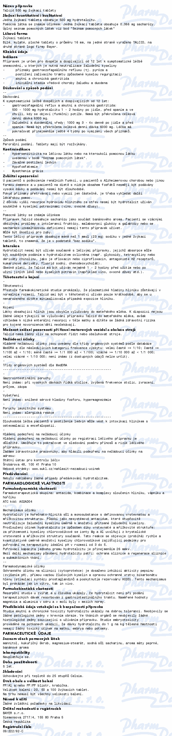 Talcid žvýkací tablety účinkují rychlým zlepšením a úlevou při zánětech žaludeční sliznice, žaludečních a dvanáctníkových vředech, zánětech jícnu, při pálení žáhy, pocitu plnosti a bolesti v nadbřišku tím, že rychle a dlouhodobě neutralizují žaludeční kyselinu; - váží pepsin a žaludek poškozující žlučové kyseliny; - posilují faktory chránící žaludeční sliznici. Talcid působí přímo v místě bolestí a nevstřebává se do krevního oběhu.