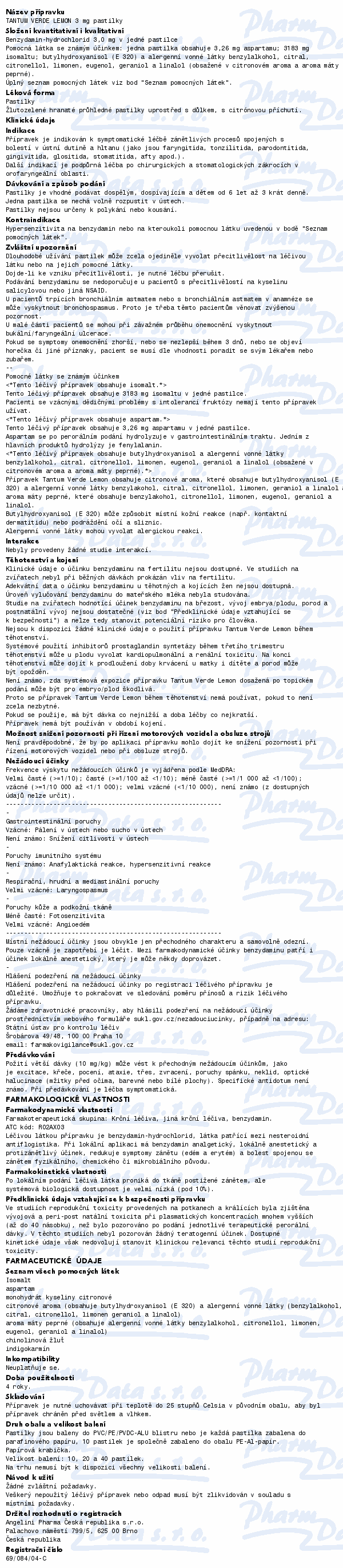 Pastilky Tantum Verde Lemon léčí bolest a zánět v krku a ústech. Mohou je užívat dospělí, dospívající a děti od 6 let. Jsou vhodné i pro pacienty s cukrovkou (neobsahují cukr). V období těhotenství a kojení není užívání pastilek vhodné.