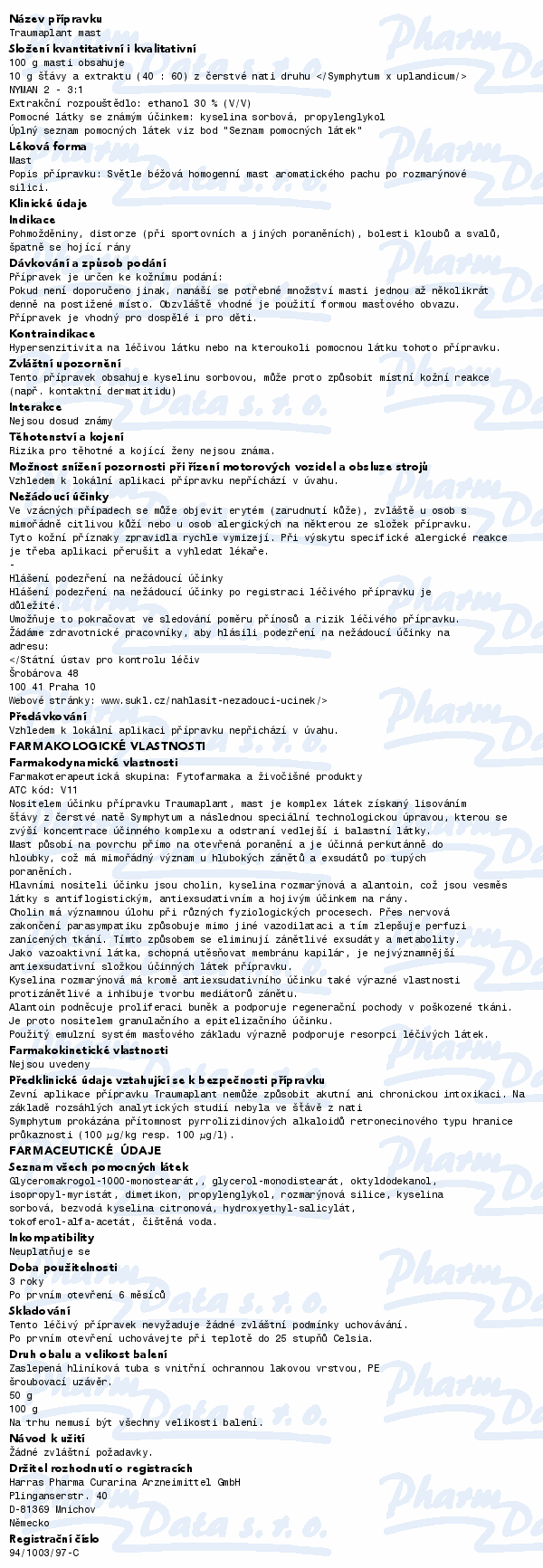 Mast s obsahem koncentrátu sťávy vylisované z čerstvě sklizené nati kostivalu cizího (Symphytum © peregrinum) v emulzním masťovém základu s — protizánětlivými účinky. Pohmožděniny, vymknutí (při sportovních úrazech), natržení svalů a šlach, bolesti svalů a kloubů, špatně se hojící rány.