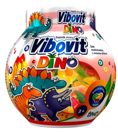 Doplněk stravy Vibovit DINO obsahující vitamíny a minerály je doporučován hlavně všem aktivním dětem, jejichž pravidelná fyzická zátěž zvyšuje požadavky na příjem těchto látek. Vibovit obsahuje pouze přírodní barviva.