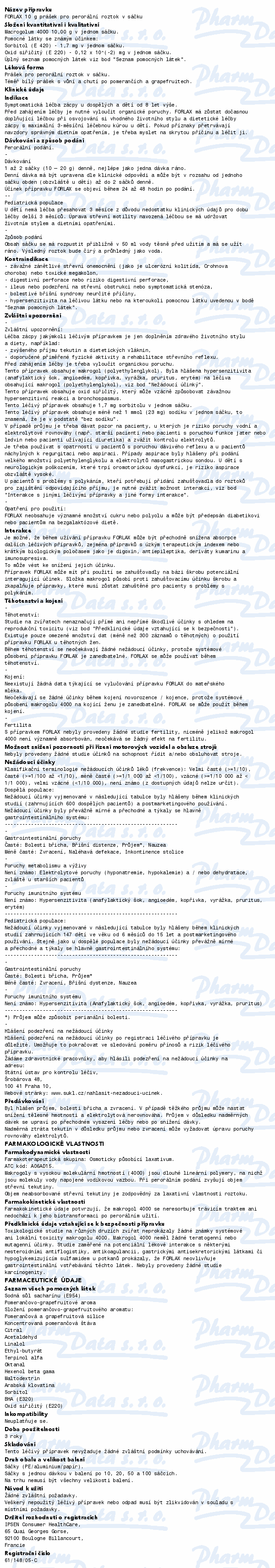 Před zahájením léčby je nutné vyloučit organické poruchy. FORLAX 10 g má zůstat dočasnou doplňující léčbou při osvojování si vhodného životního stylu a dietetické léčby zácpy s maximální 3-měsíční léčebnou kůrou u dětí. Pokud příznaky přetrvávají navzdory správným dietním opatřením, je třeba myslet na skrytou příčinu a léčit ji.