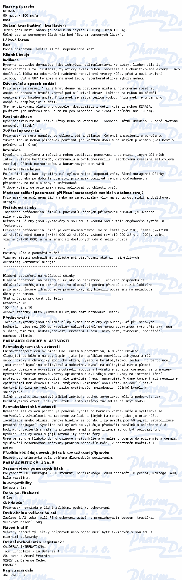 Kerasal mast je určen k ošetření kožních onemocnění projevujících se nadměrně zrohovatělou ztvrdlou pokožkou a olupováním kůže. Čtěte pozorně příbalový leták.