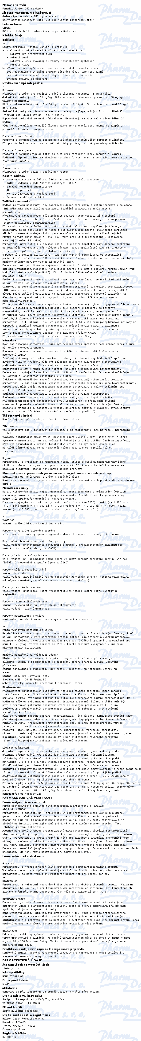 Panadol Junior je určen ke snížení horečky provázející chřipku a nachlazení, stejně jako infekční onemocnění dětského věku a očkování. Je též vhodný k tlumení bolesti provázející prořezávání zubů, bolesti zubů, bolesti v krku při chřipce a bolesti hlavy. Čtěte pozorně příbalový leták.