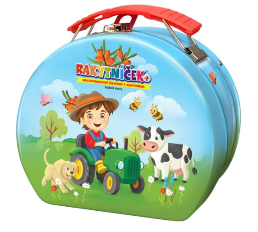 Limitovaná edice Rakytníček Multivitaminové želatinky v kufříku obsahují vitaminy, směs ovocných koncentrátů a rakytník, který podporuje přirozenou obranyschopnost. Šťavnaté želatinky neobsahují konzervanty ani přidaná barviva a díky skvělé ovocné chuti je děti budou milovat.